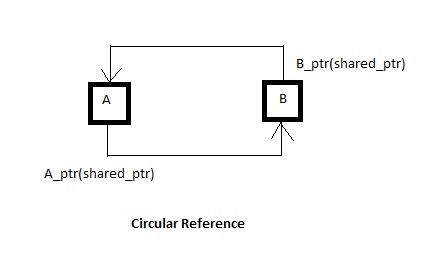 循环依赖( shared_ptr 的问题):让我们考虑一个有两个类 A 和 B 的场景,A 中包含 B 的指针变量,B 中包含 A 的指针变量。有如下所示关系时: