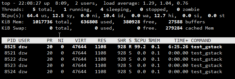 查看 high cpu 进程 id: