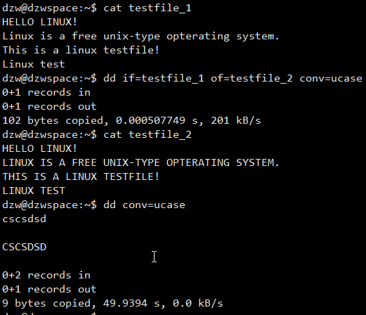 将 testfile_1 文件中的所有英文字母转换为大写,然后转成为 testfile_2 文件