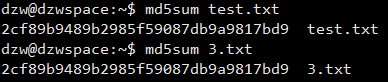 合并后的 3.txt 文件和 test.txt 文件的 md5 一致