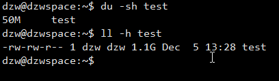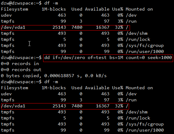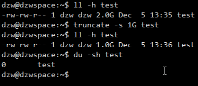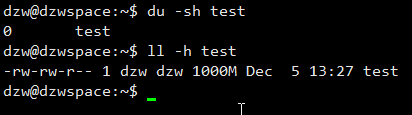 此时创建的文件在文件系统中的显示大小为 1000MB,但是并不实际占用 block,因此创建速度与内存速度相当